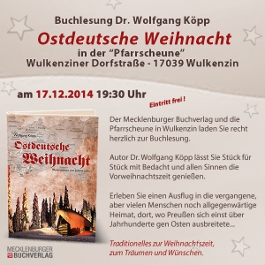 Lesung zum Buch Ostdeutsche Weihnacht von Dr. Wolfgang Köpp in Wulkenzin - 17.12.2014 19.30 Uhr - Pfarrscheune